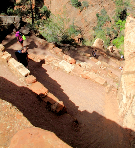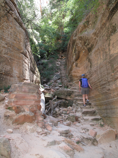 Leden startar vid busshållplatsen Weeping Rock och går upp på en av de högsta topparna i parken. Bitvis är det brant och smalt men man har fördelen att gå i skuggan under hela första delen av vandringen. Leden börjar med att gå i zigzag uppför berget för att sedan gå igenom en gammal flodravin.